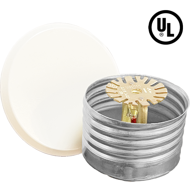A sprinkler escutcheon plate is a cover designed to improve the appearance of a fire sprinkler head, concealing the gap between the sprinkler and the ceiling or wall.